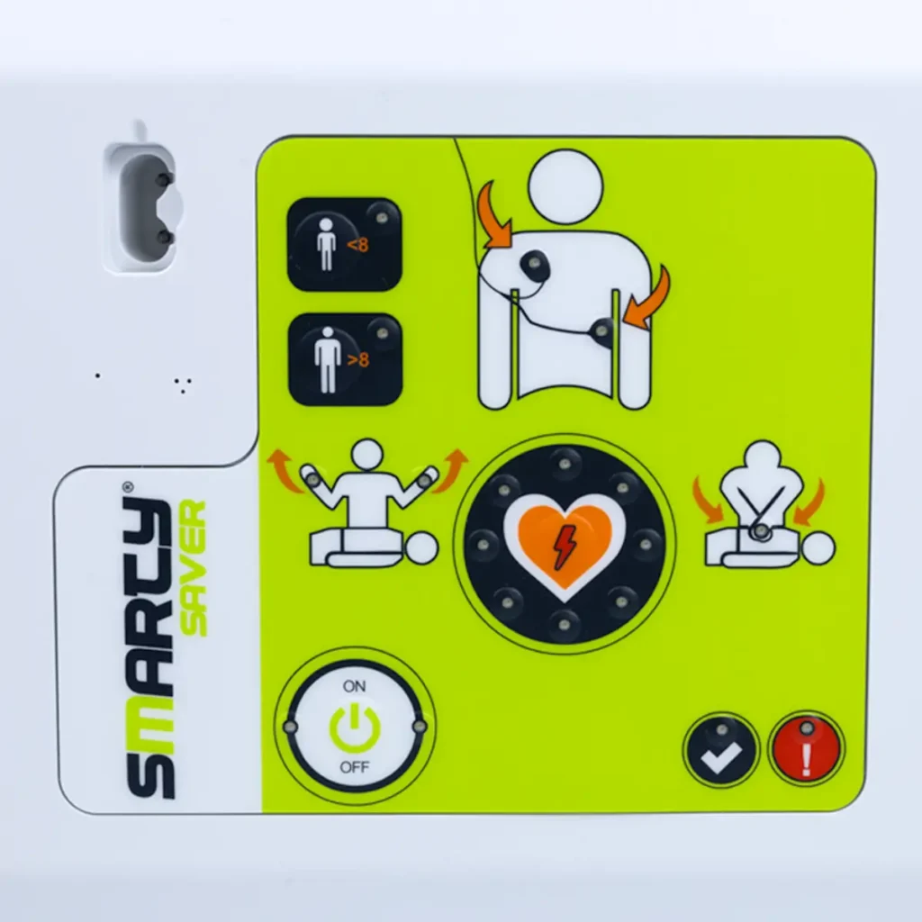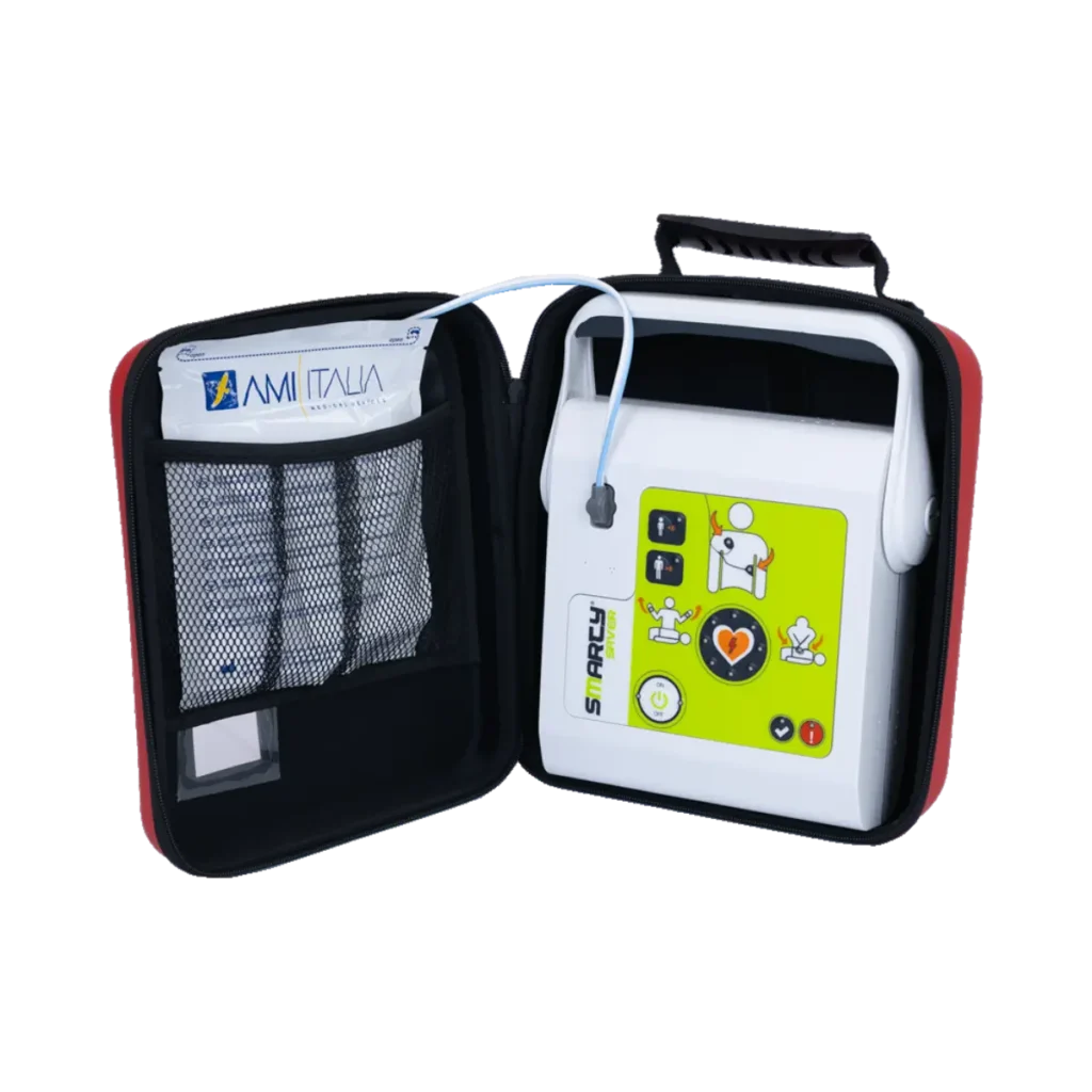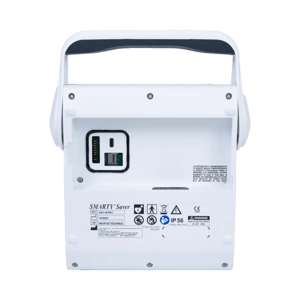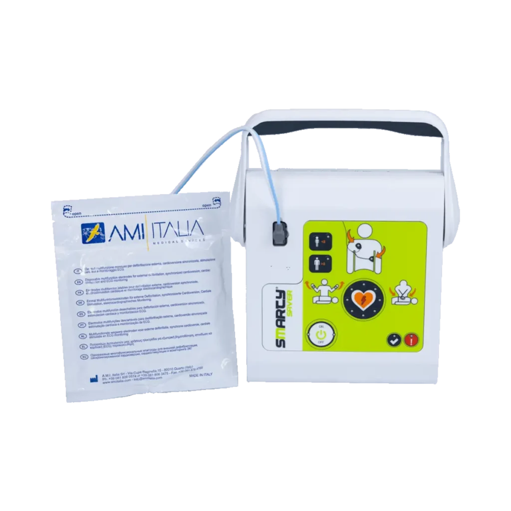 AMI Italia Smarty Saver är en halvautomatisk hjärtstartare (AED) som utvecklats för att vara så enkel som möjligt att använda, även för dig som aldrig har använt en förut. När enheten upptäcker en rytm som kräver chock laddar den automatiskt upp sig själv, och du behöver bara trycka på chockknappen när den säger till.